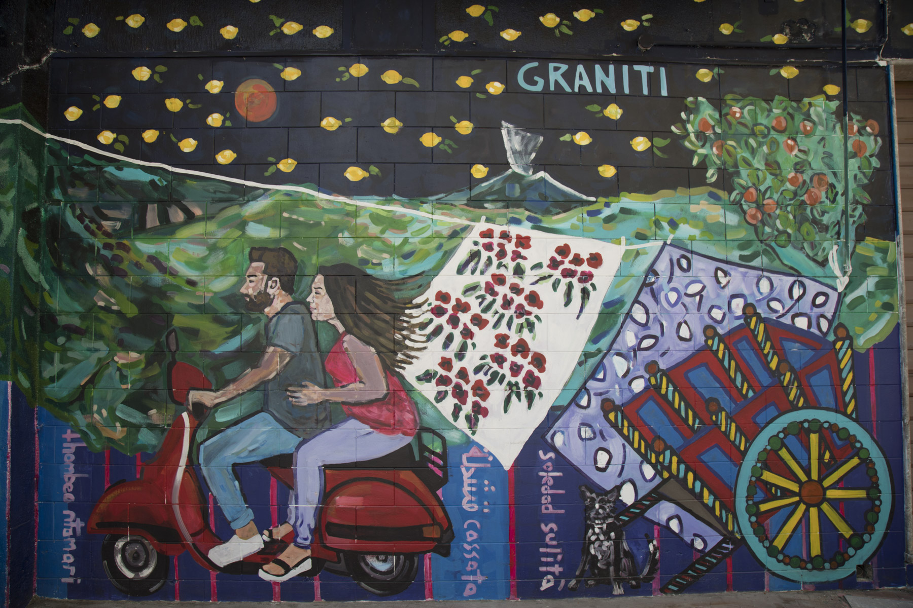 Lelia Byron is an interdisciplinary artist whose vivid paintings capture the people, stories, and atmosphere of both real and imagined places, including her reinterpretation of life in Graniti through bold use of colour. Working across painting, sculpture, murals, installations, and public art, her practice explores themes of connection, sustainability, and social justice. Her projects include murals in Rauma, Finland, using lace-making as a metaphor for language, a sculpture made from plastic waste in Madison, and paintings highlighting women coffee farmers in Colombia and labour struggles in Massachusetts. Educated at Carnegie Mellon University and Chelsea College of Arts, Lelia, originally from New York and now based in Madison, WI, continues to create art that bridges communities and inspires reflection.
